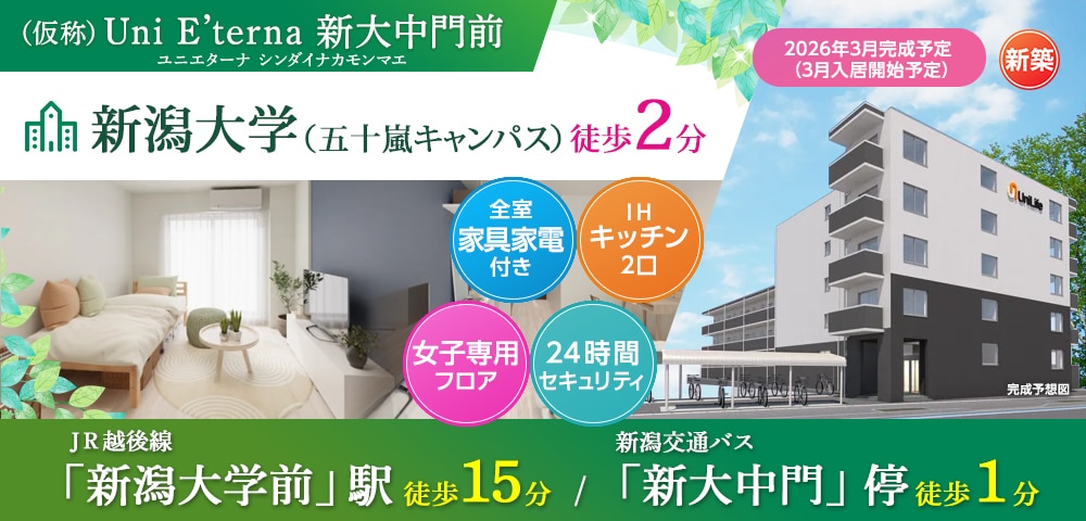- できるアパートとできないアパートがあります。また、新潟大学が第一志望の方のみ合格前契約ができます。