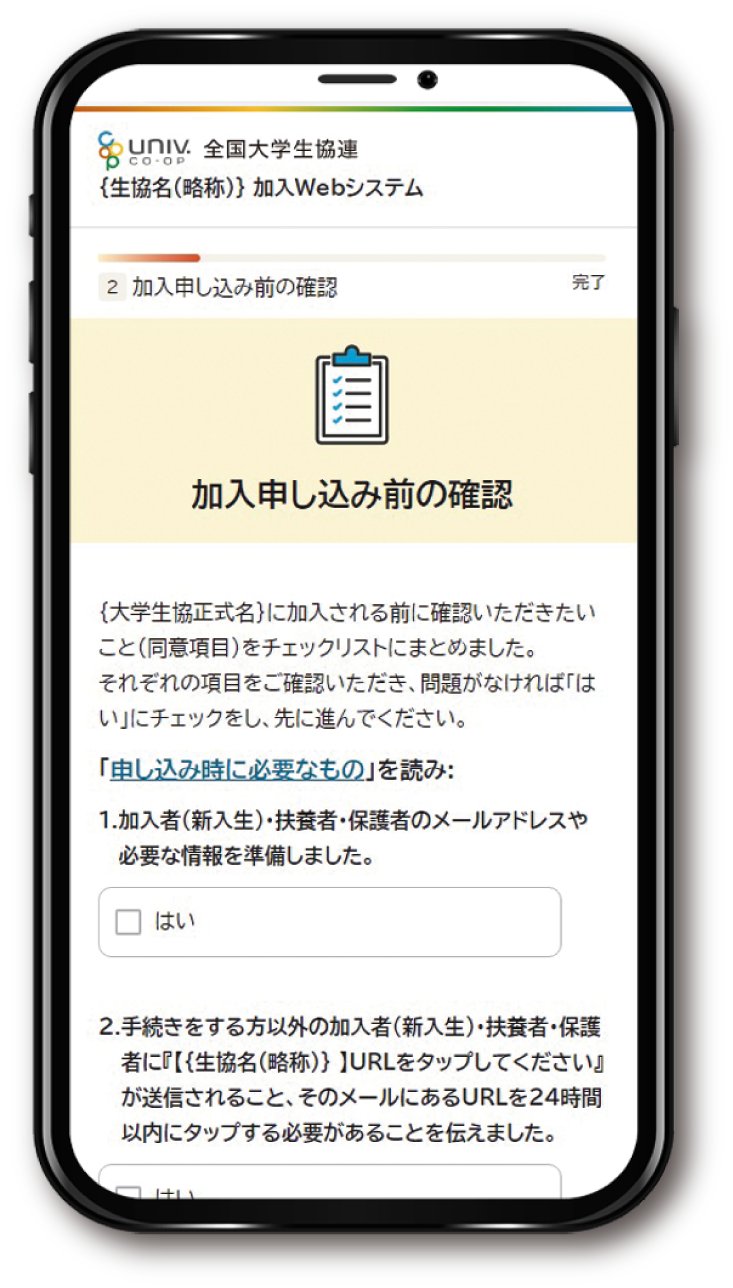 それぞれの項目をご確認いただき、問題がなければ「はい」にチェックをし、先に進んでください。