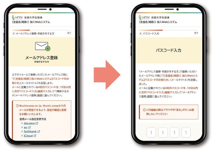 - 「大学生協アプリ」の登録にてメールアドレスを使用します。そのため、同じメールアドレスでは登録ができません。それぞれ異なるメールアドレスをご準備ください。