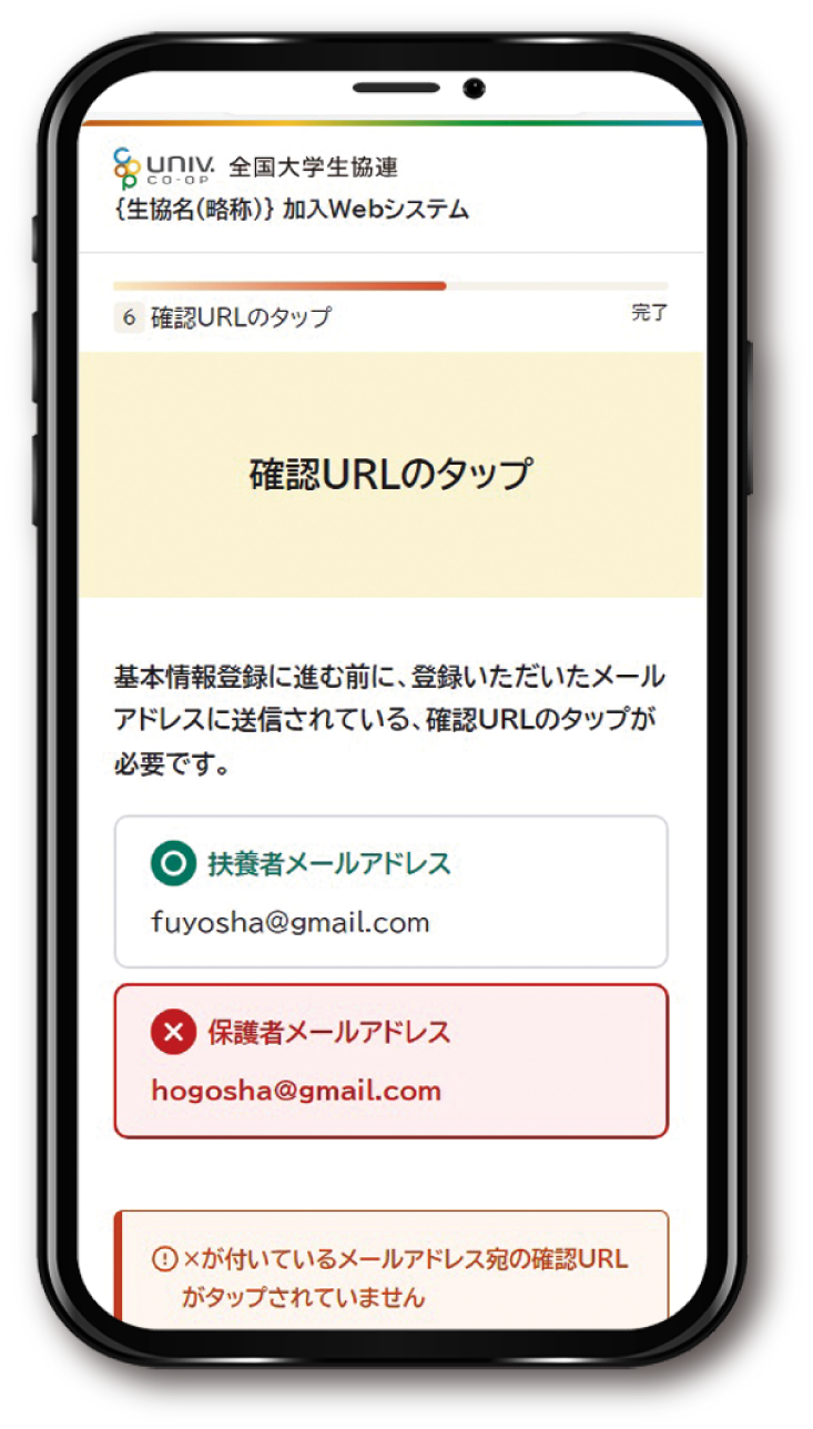 すべての登録メールアドレスの確認が完了しましたら、「確認URLのタップ」画面の「確認URLがタップされたかチェックする」ボタンをタップして、お手続きを進めてください。