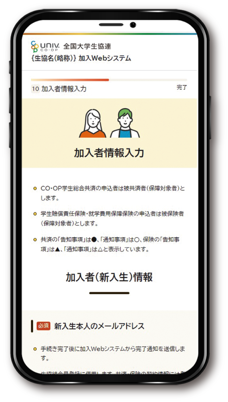 加入者(新入生)・扶養者・保護者のメールアドレスをご準備ください。
