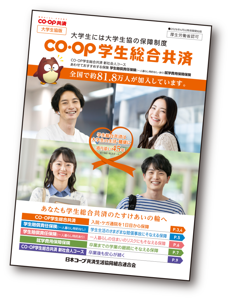 ※詳しくは、募集パンフレット9ページの「CO・OP学生総合共済 新社会人コース」のご案内をご覧ください。