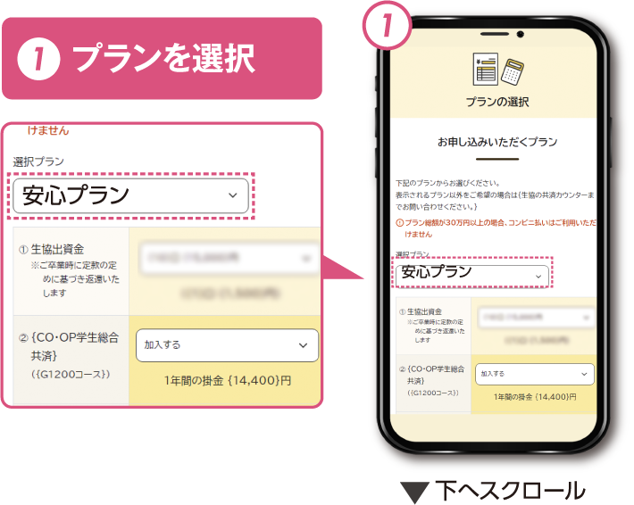 1.「新大生安心プラン」「基本プラン」等ご希望のプランをご選択ください。
