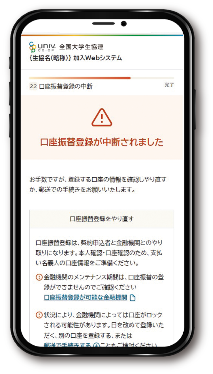 金融機関でエラーになった場合は、いずれかを選択してください。