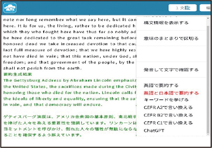 DICTOOLのAI解析により、英文を日本語と英文、あるいは英文だけで要約し、文章の概要を把握することができます。