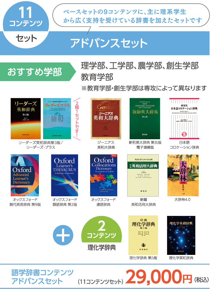 - このセットは6年間利用可能な、Webブラウザ上でネットサービスとして動作する辞書サービス用のコンテンツです。