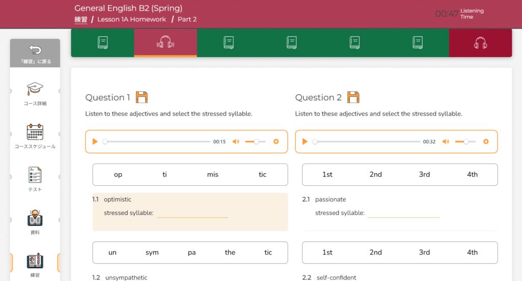 TOEIC形式の音声を聞きながら問題に取り組みます。スクリプトの確認や繰り返し再生ができ、自分のペースで弱点を補強できます。