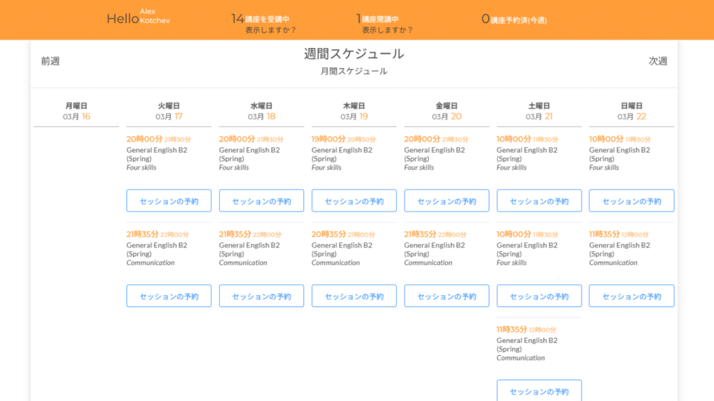オンライン上で受講したい日時を選んで予約します。授業やアルバイトと調整しながら、無理なく継続しやすい仕組みです。