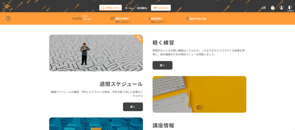 学習センターのトップ画面から、自分の受講状況やこれから取り組むべきコンテンツを一目で確認できます。