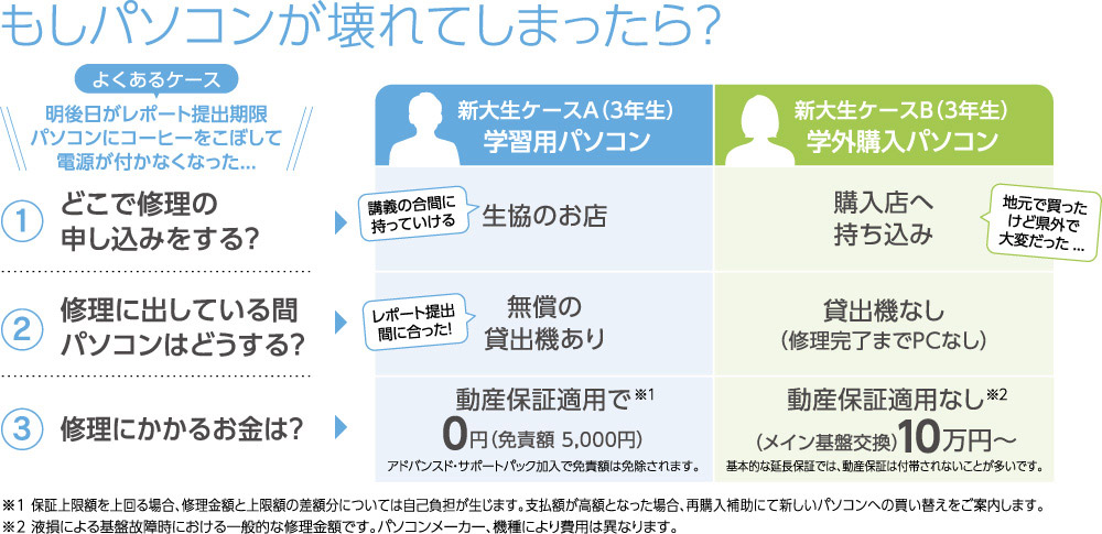 授業やレポートなど、パソコンは毎日使用します。その中で壊れてしまったら、どうしますか?