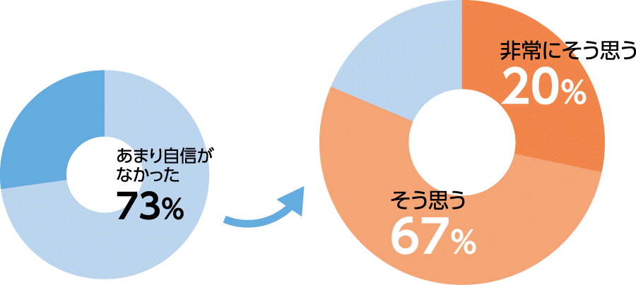 約9割近くの受講生が受講後にパソコン使用に自信がついたと回答